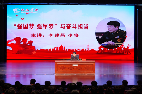 9月3日下午,国防大学教授、博士生导师、河西学院客座教授李建昌少将为2024级军训学生作了题为《“强国梦 强军梦”与奋斗担当》的国防教育专题报告。